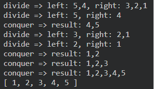 console.log(mergeSort([5, 4, 3, 2, 1]));