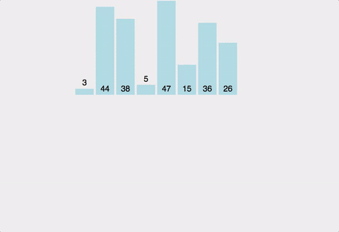 한인덱스씩 뒤로가며 붙어있는 인덱스를 서로 비교해 더 큰 인덱스의 원소를 뒤로 보내는 방식으로 진행된다.